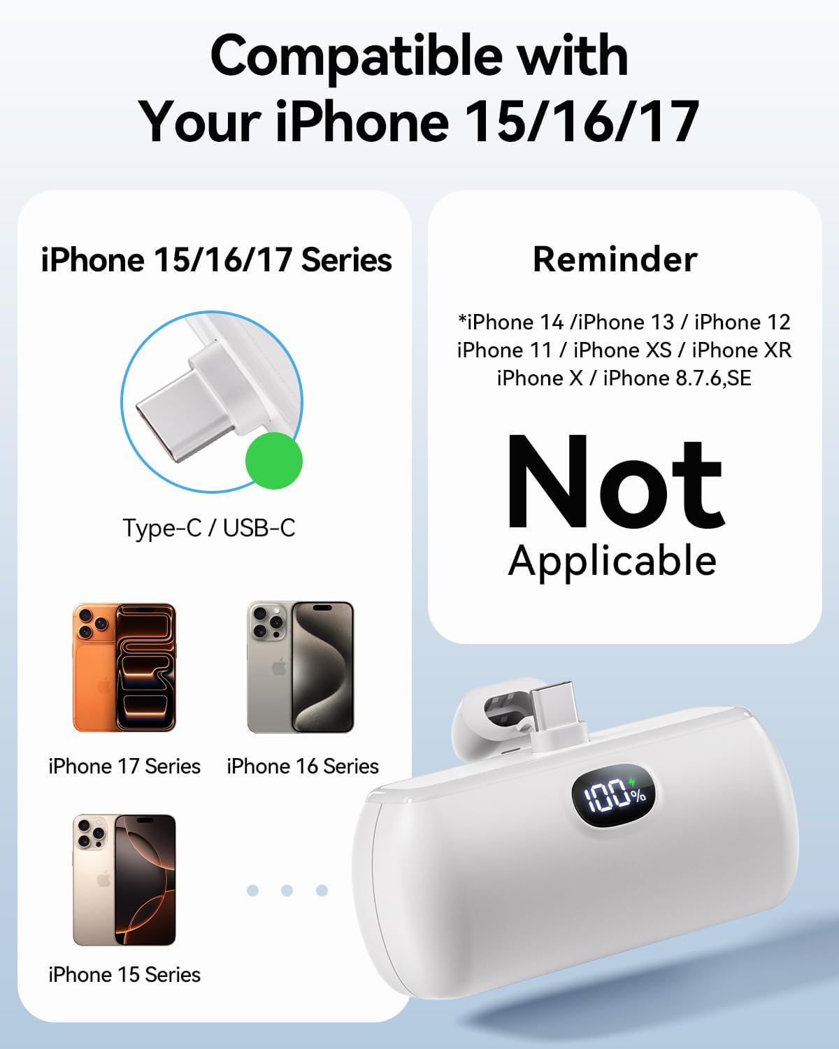 Introducing the Mini Portable Charger USB C, your ultimate travel essential! With a powerful 5000mAh capacity, this compact power bank ensures your devices stay charged on the go. Designed for compatibility with iPhone 17/16/15, Android smartphones, and more, it delivers a remarkable 22.5W Max Fast Charging capability, allowing you to power up your devices quickly and efficiently.