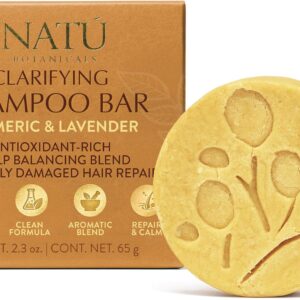 NATÚ BOTANICALS Clarifying Shampoo Bar – Strengthening Solid Shampoo Bar with Turmeric, Lavender and Cocoa Butter for Strengthening and Hair Repair – Sulfate Free for Silky Shine & Paraben Free 2.3oz